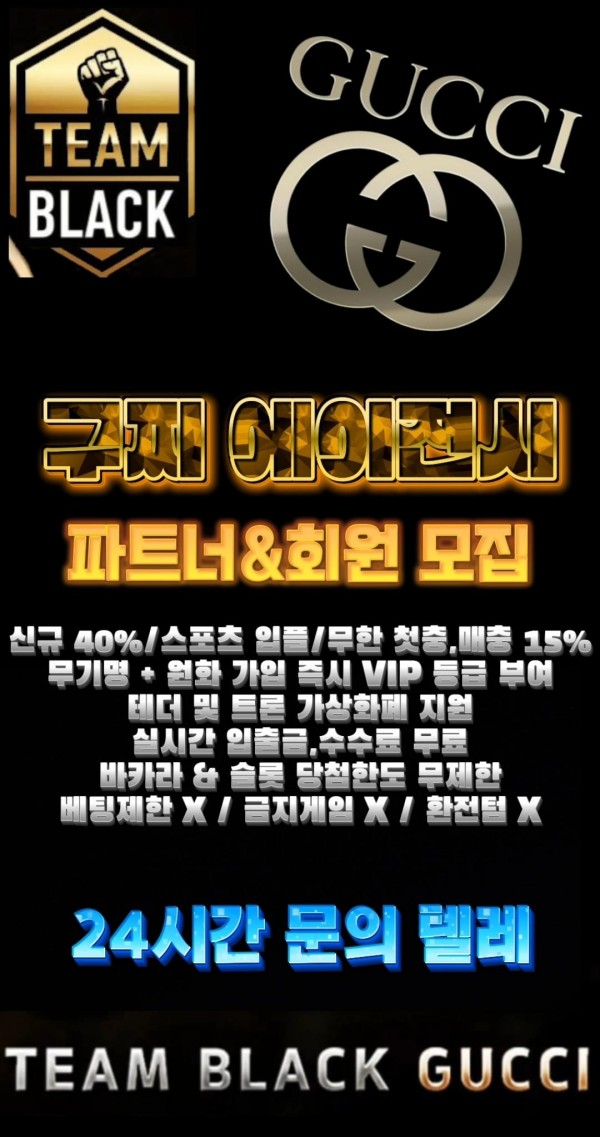✨️각종 혜택 챙김 케어 1위 구찌 에이전시 - 파트너 & 회원 모집 - ✨신규 40%/스포츠 입플/무한 첫충/매충 15% - 업계 최대 혜택