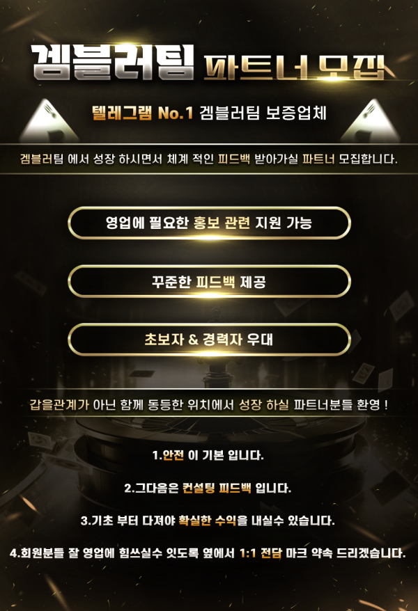 겜블러팀 에서 성장 하시면서 체계 적인 피드백 받아가실 파트너 모집합니다.